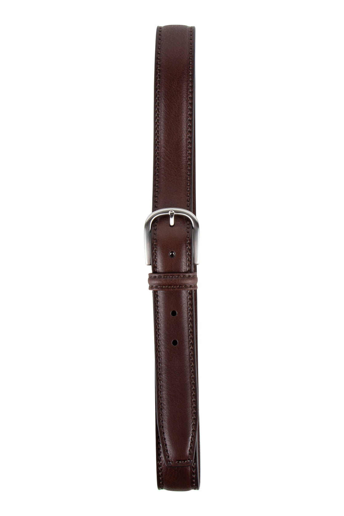 Anderson’s has been making belts in Parma, Italy - and nowhere else - for the last 50 years with an established reputation for quality and craftsmanship. The Anderson's Brown leather dress belt with rounded silver buckle is 35mm in width.