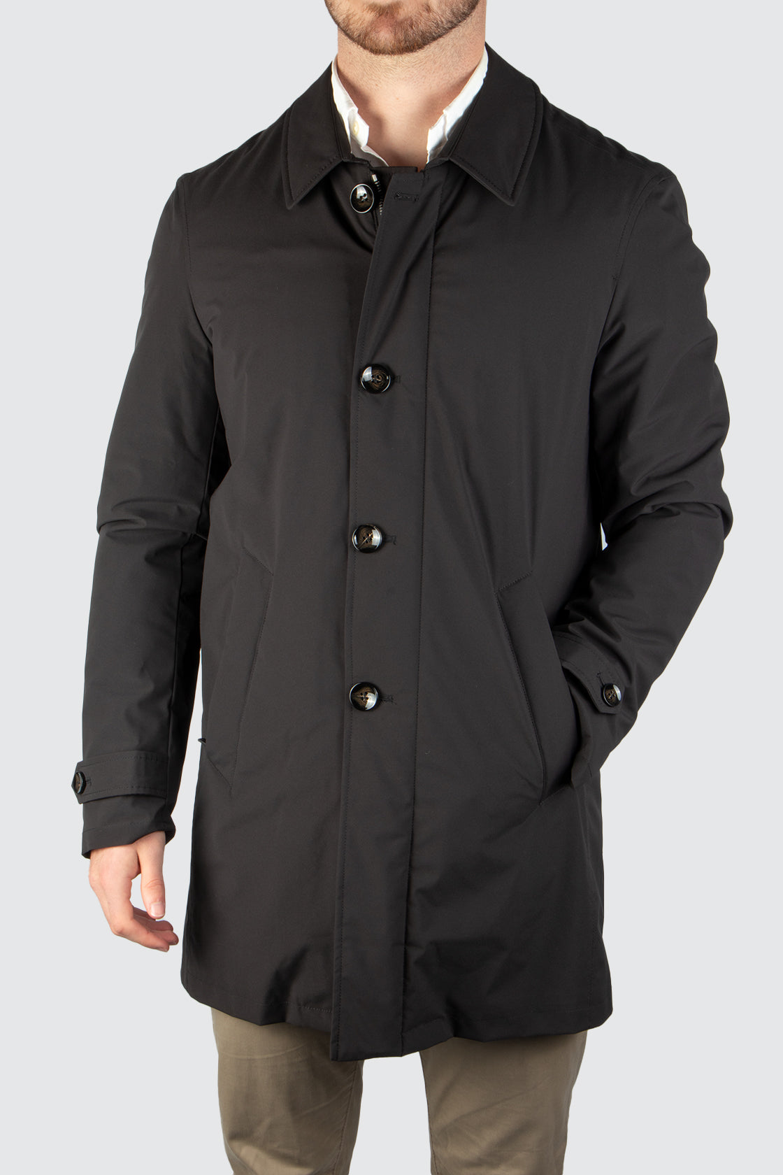 Stay stylish and dry any time of year with the all-weather coat from Bugatti. This coat impresses with its water-repellent materials, combined with a classic turn-down collar, button placket and zip. Its sophisticated design includes welt pockets and additional inside pockets for practical storage. The removable quilted and mesh lining guarantees comfort and warmth. An essential piece for the modern man!