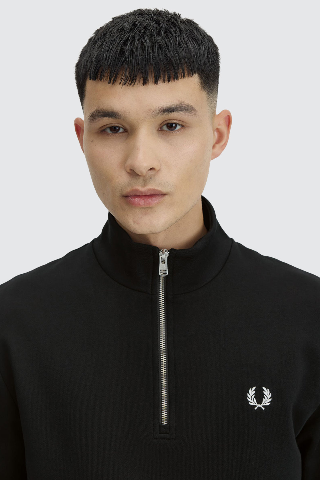 In 1952, Triple Wimbledon champion Fred Perry design his first pique shirt. That shirt, the shirt, would transcend sportswear to streetwear on the backs of generation after generation of British youth subcultures. A midpoint between sport and streetwear, Fred Perry's half-zip sweatshirt is a versatile wardrobe staple with a stripped back, minimalist design. Featuring their signature Laurel Wreath embroidery and twin tipped cuffs, the sweater is finished with a classic funnel neck for a sharp finish.