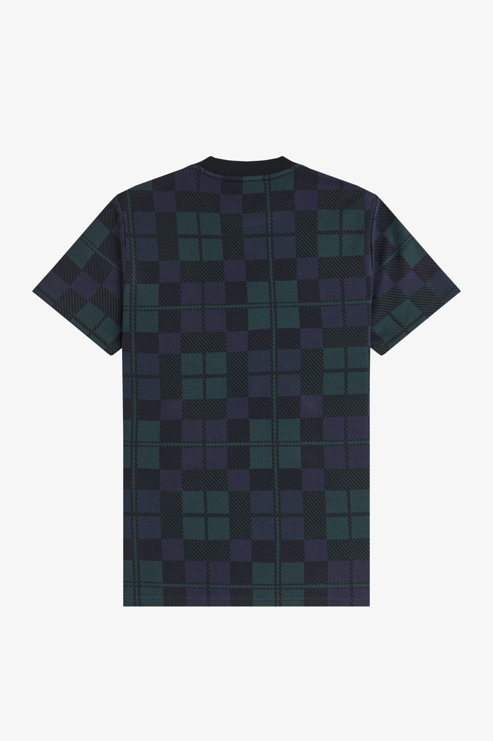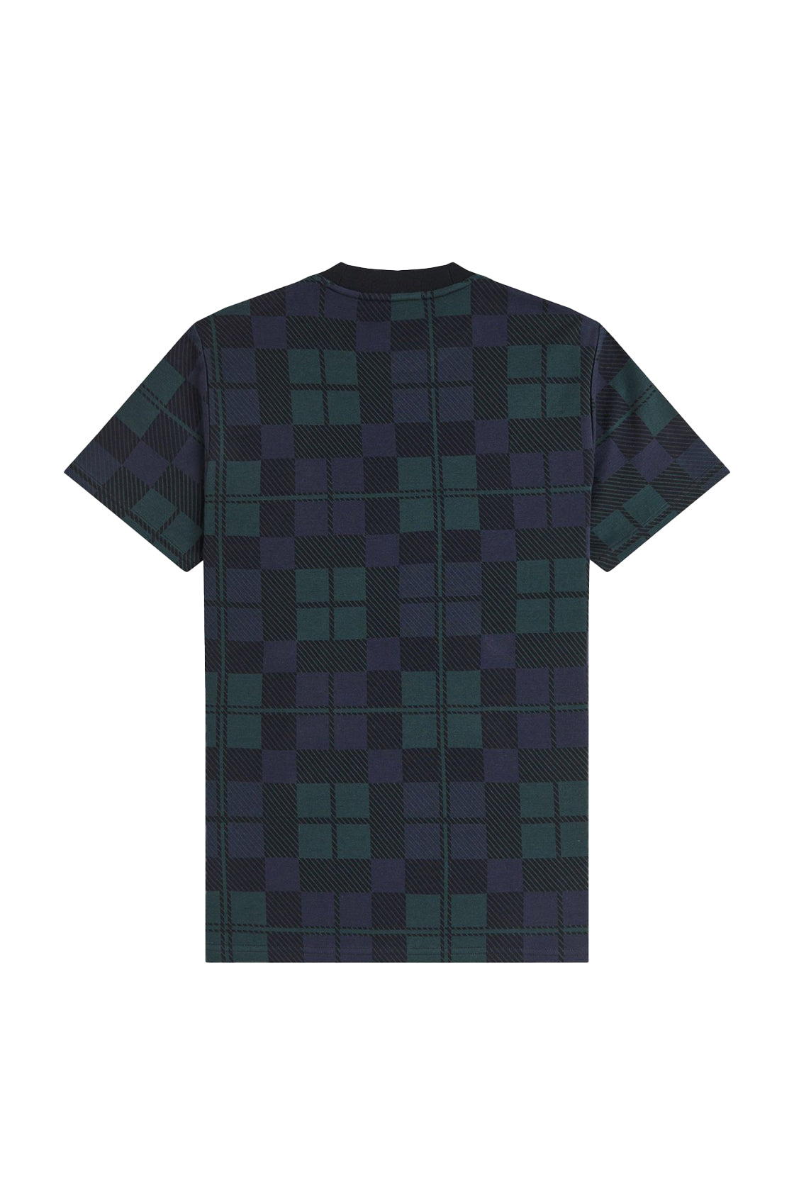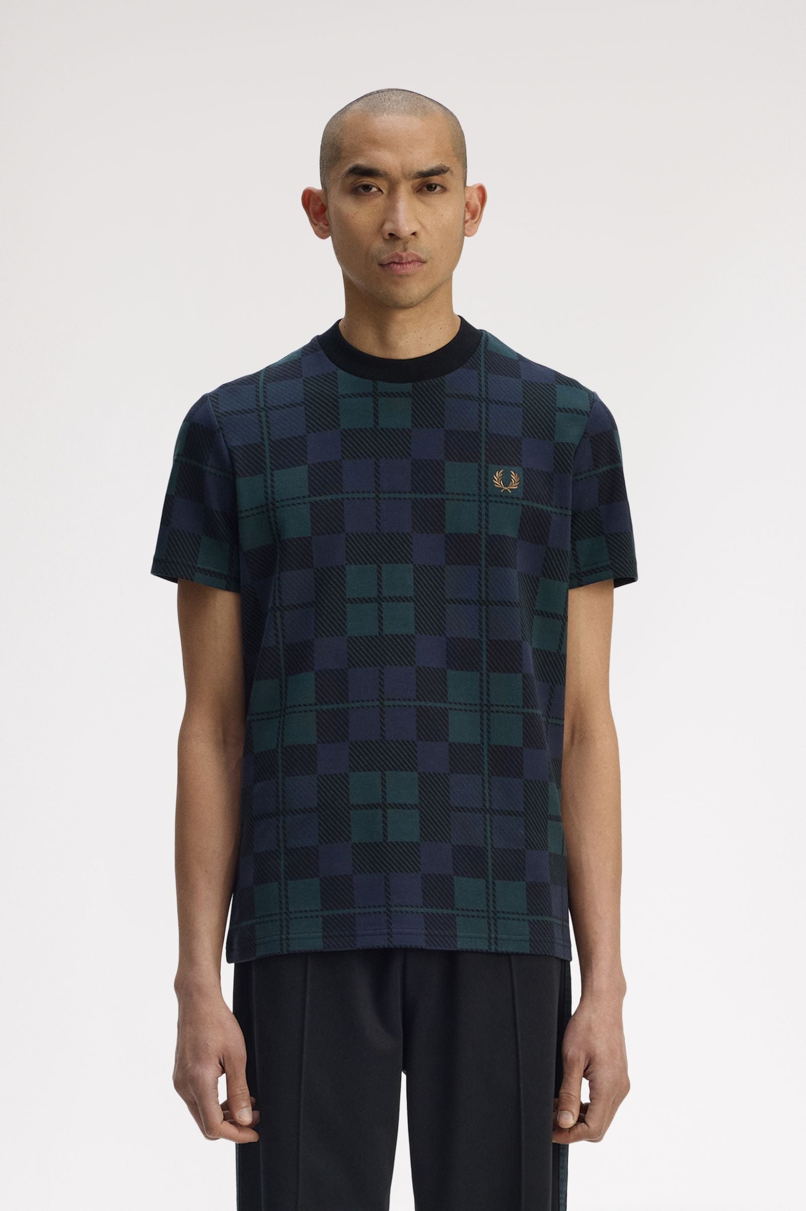 Fred Perry classic cotton T-shirt in our Black Watch tartan jacquard. A cotton jersey T-shirt in the stormy hues of Black Watch tartan that originated in the Scottish Highlands: an ‘open’ tartan that stands for tradition and loyalty. Finished with a deeper flat knit neck trim and the embroidered Laurel Wreath where you know to find it.