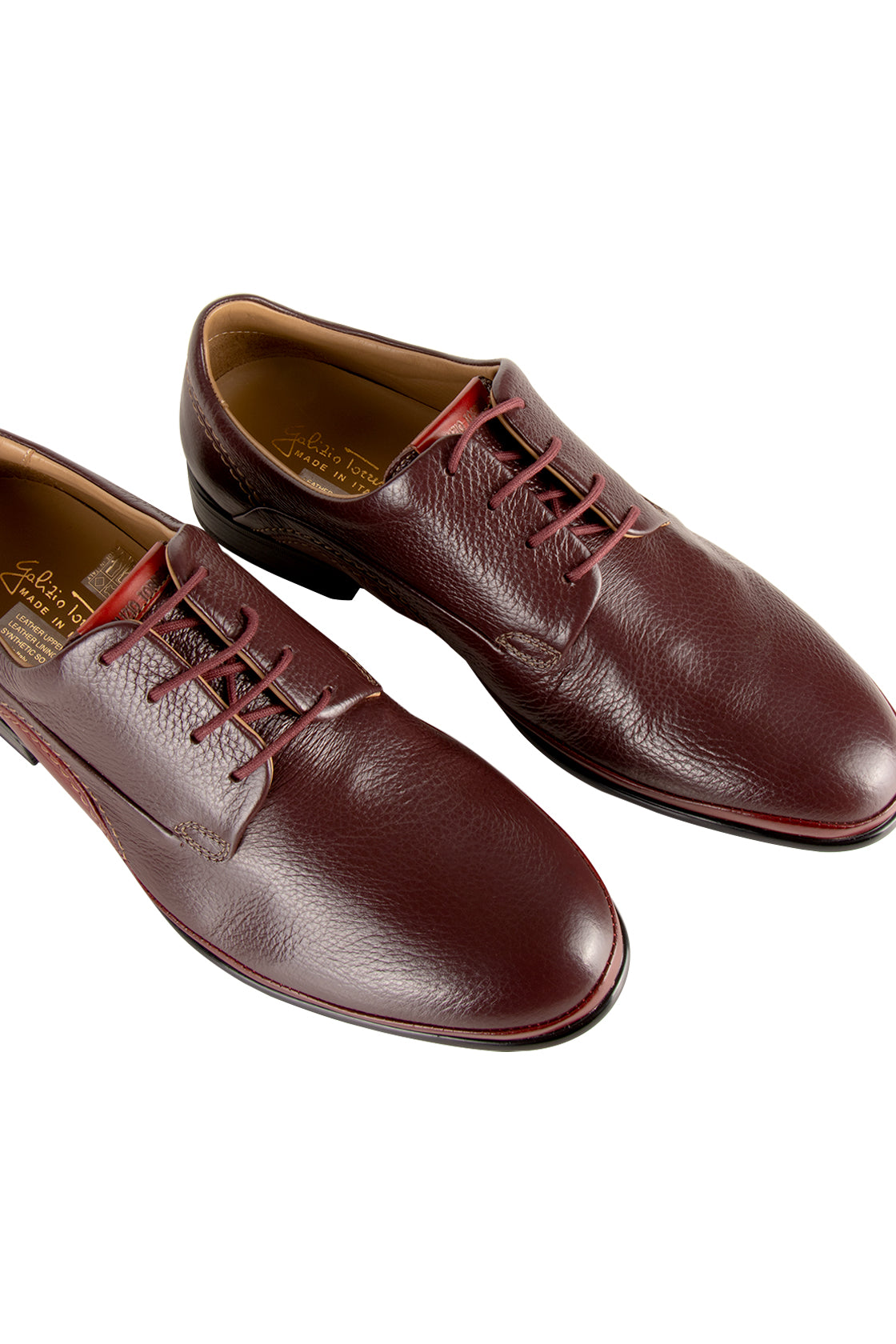 Burgundy leather dress shoe with round toe and padded ankle collar.