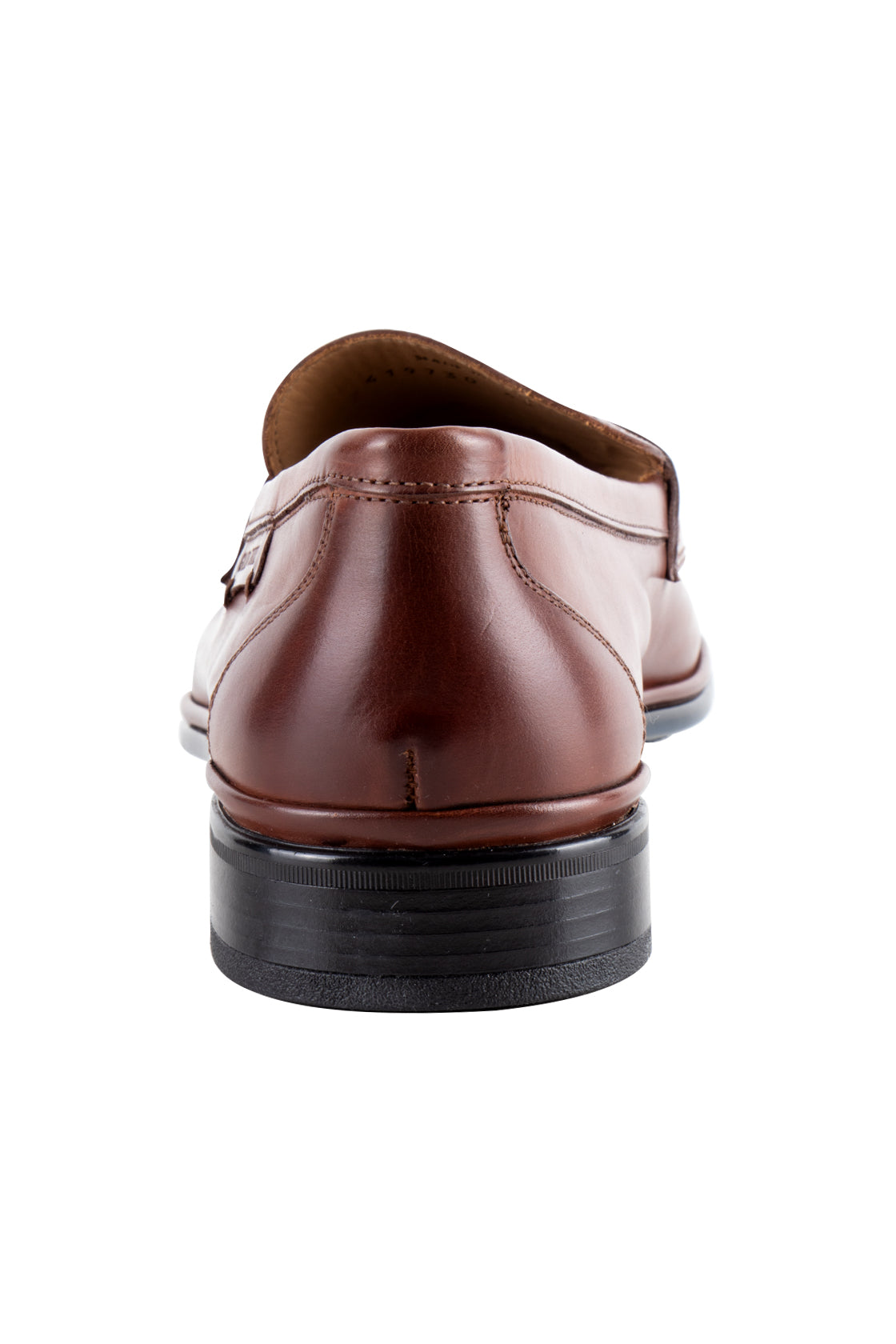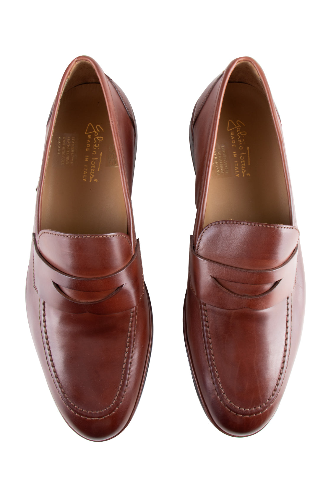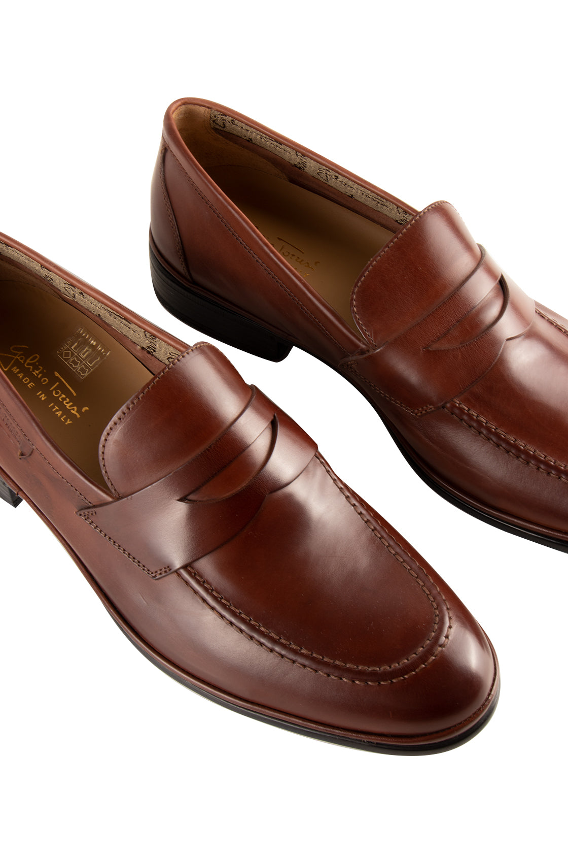 Stylish and versatilemid brown leather penny loafer made in Italy.