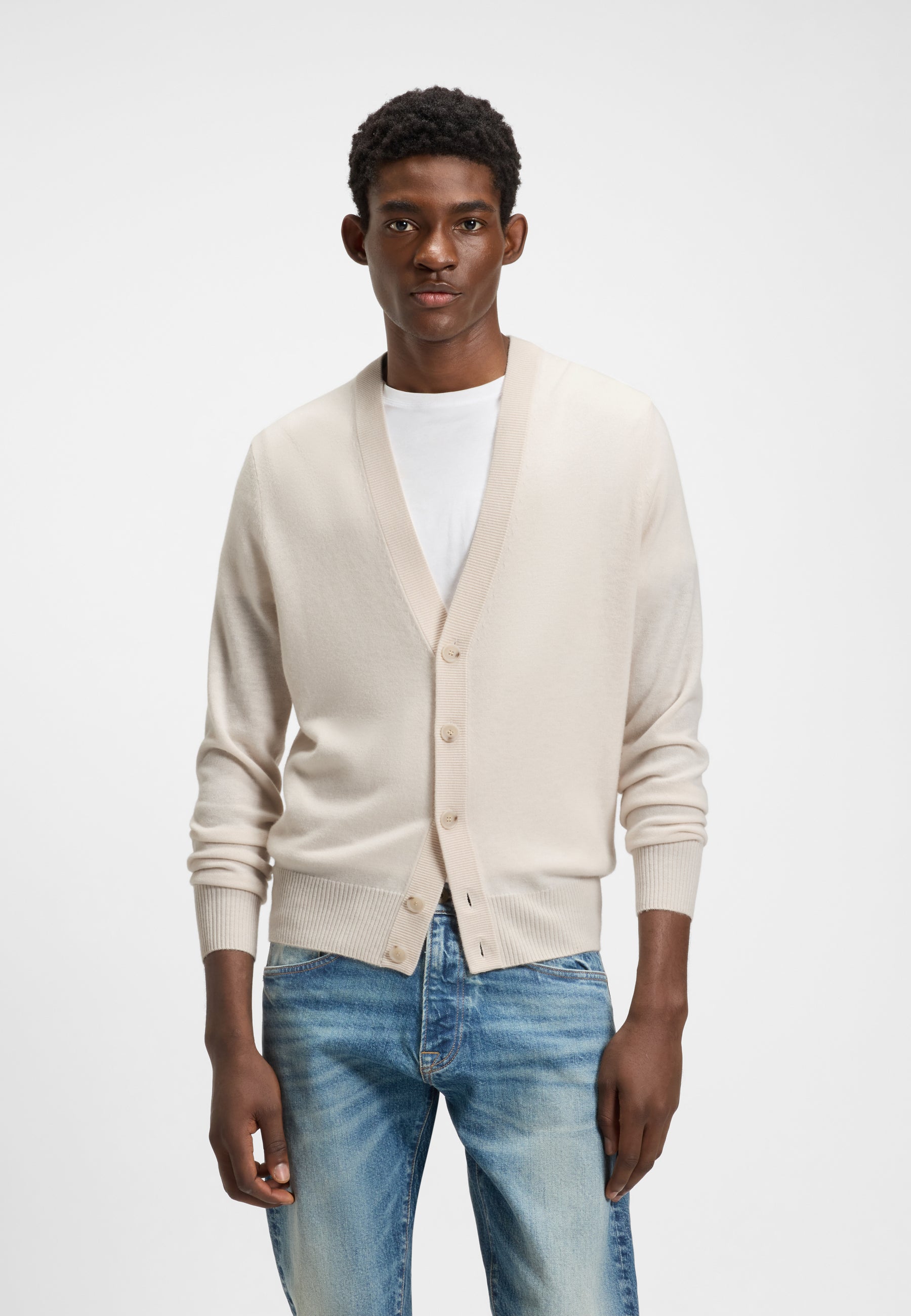 A versatile layer crafted in 100% cashmere, this BECKHAM x BOSS cardigan should be in every man's wardrobe. Regular fit with elegant French shoulders. BECKHAM x BOSS brings effortless style with timeless and elevated statement pieces, inspired by David’s wardrobe.