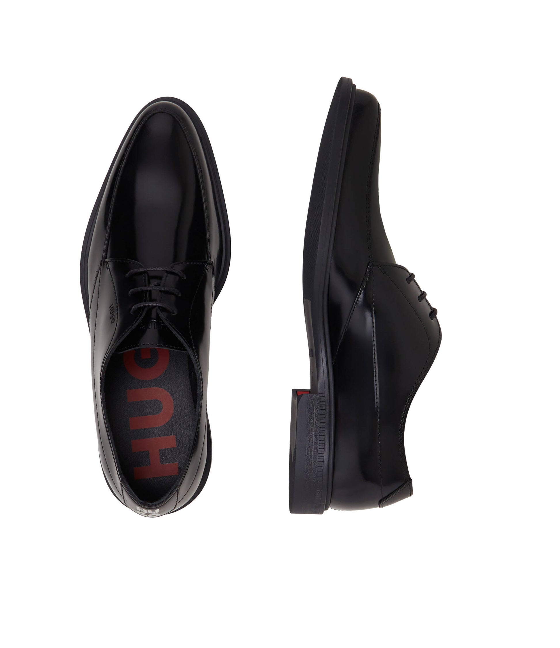 Polished Derby shoes crafted in smooth leather and detailed with a stacked logo on the counter by HUGO.