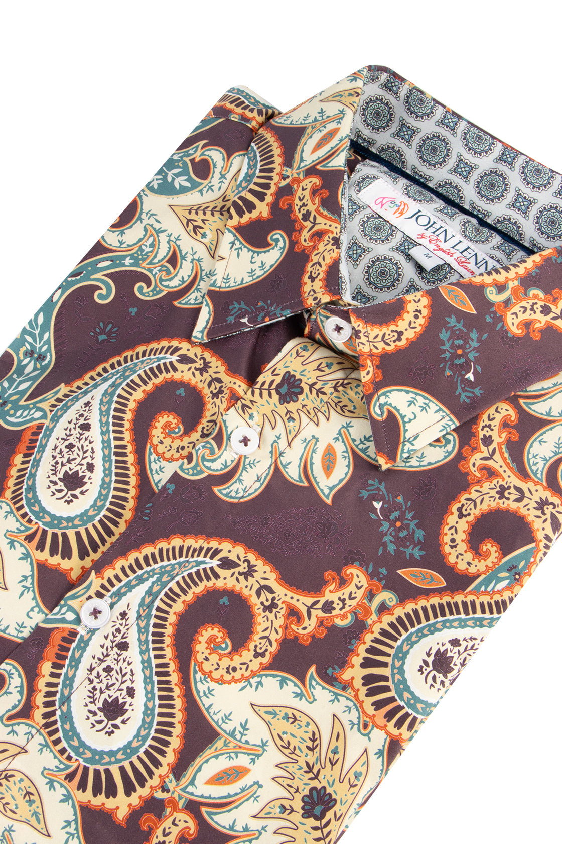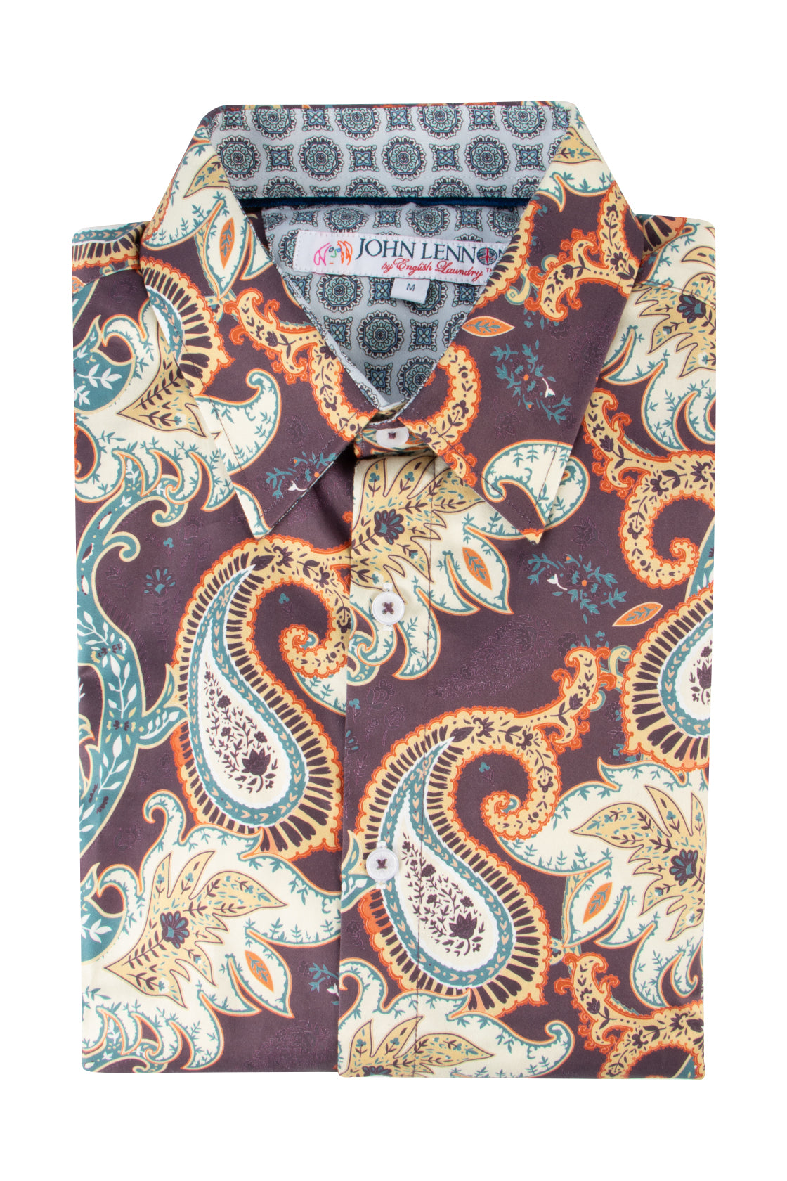 The limited edition range of John Lennon shirts by English Laundry are inspired by the musical legend's very own sense of style. A bohemian-inspired paisley pattern long-sleeve shirt in this season's key shade of plum. Featuring signature contrast trim, John Lennon embroidered motif and peace-sign buttons.