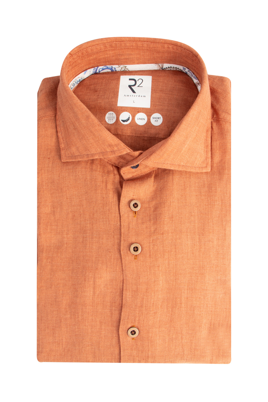 R2 Amsterdam have been creating vibrant shirts for business and pleasure since 2007, offering unique designs crafted from premium cloths. This terracotta linen shirt is luxuriously lightweight and ready for the summer heat, whilst retaining sartorial flair with brown detail buttons and stitching.