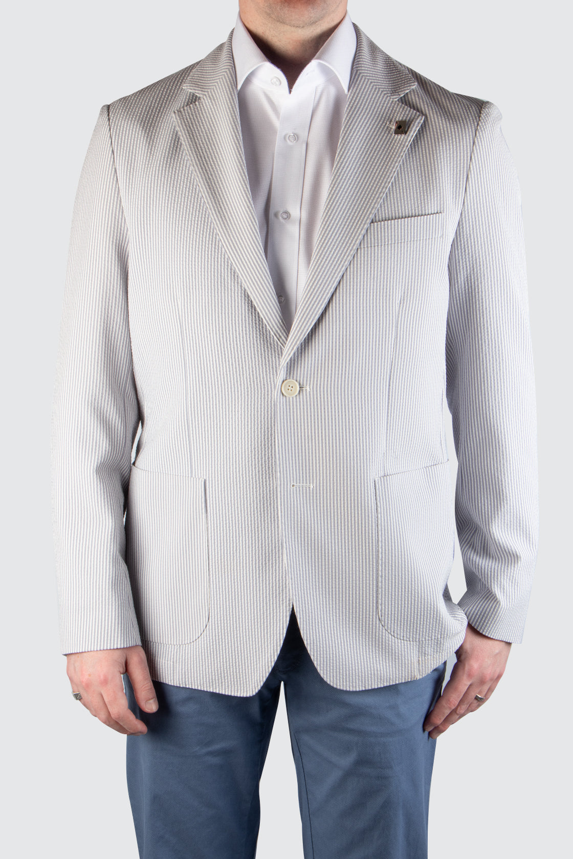 Routleys Seersucker Look Stripe Sportscoat Grey