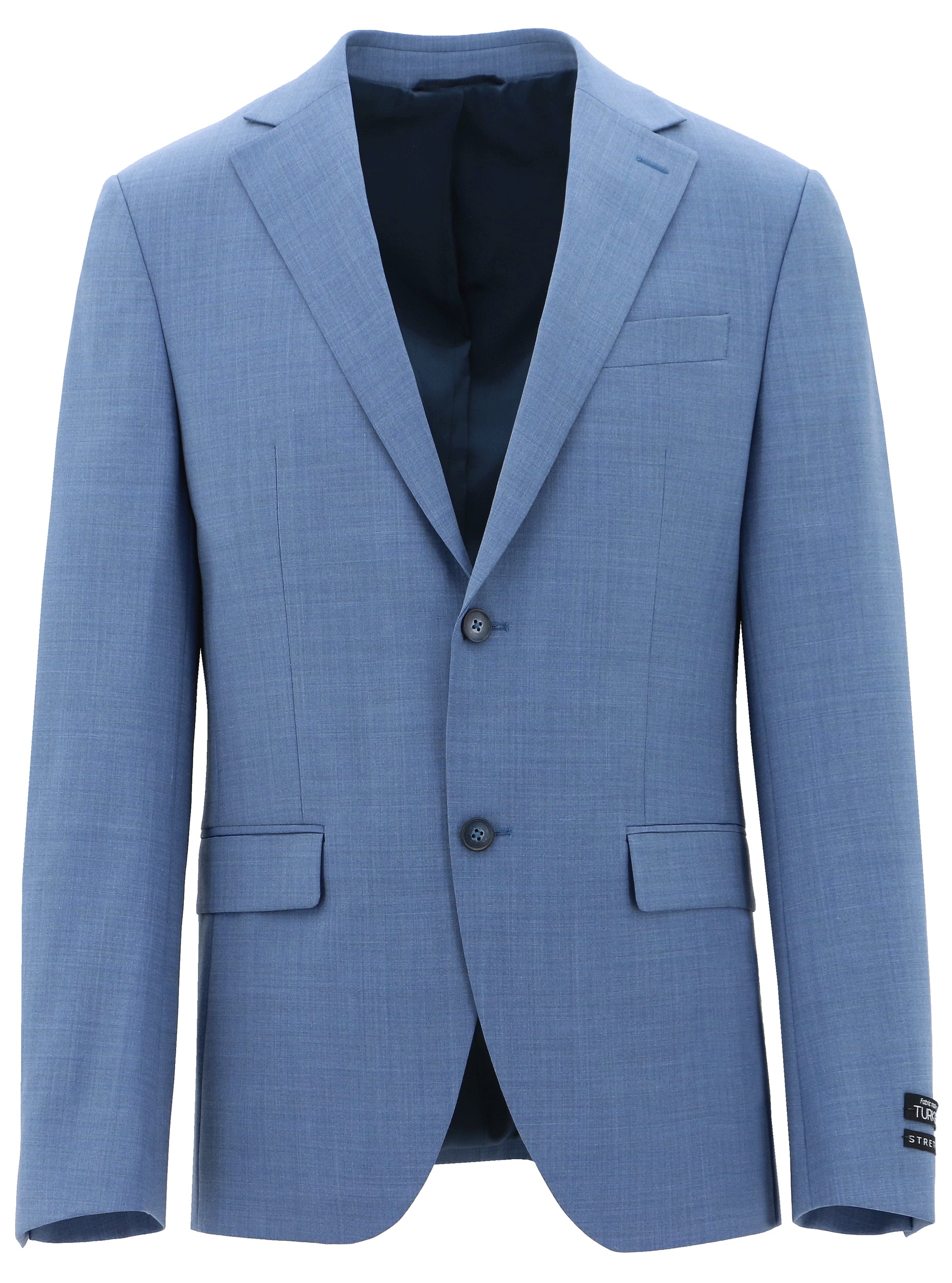 The Routleys LE suit offers a slim fit with a notch lapel, patch pockets, and a chest ticket pocket. It features a two-button closure, two front flap pockets, and trousers with rear buttoned pockets. Made from 100% wool, this suit ensures both style and comfort.