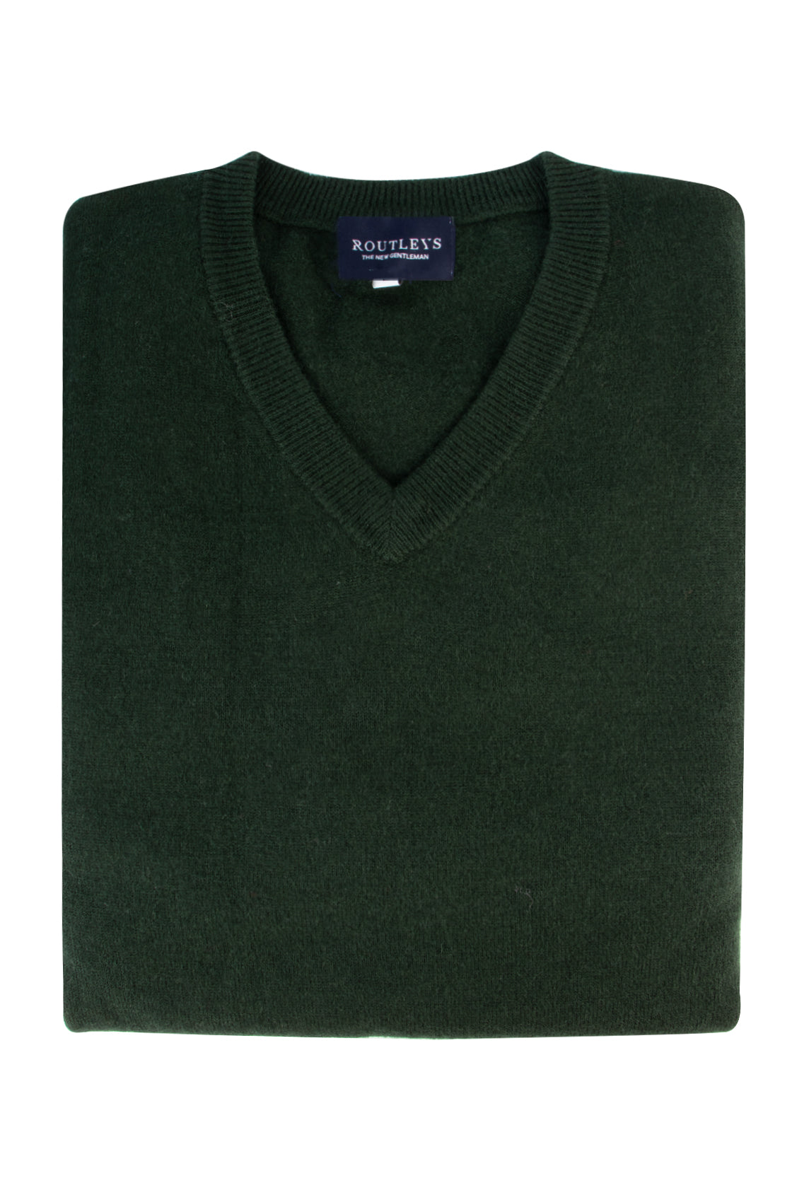 Routleys V Neck Wool/Cashmere Pullover Deep Emerald