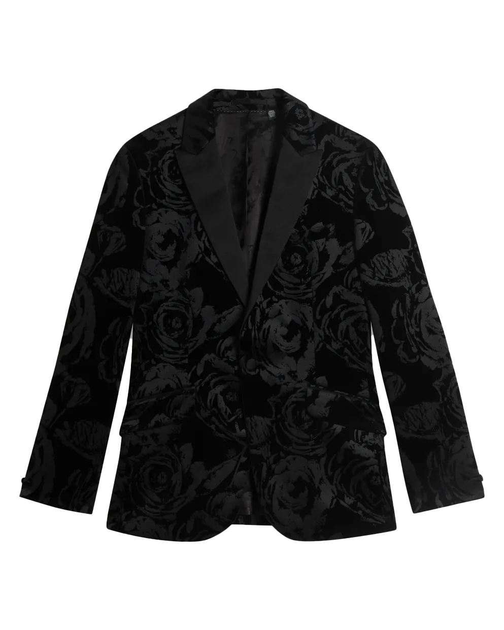 Bath blazer makes a grand entrance. Crafted from a cotton-rich fabric, this rose-patterned blazer is comfort and class all wrapped up in one exquisite piece.